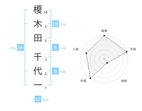 榎木田 千代一さんを姓名の画数から五運を鑑定