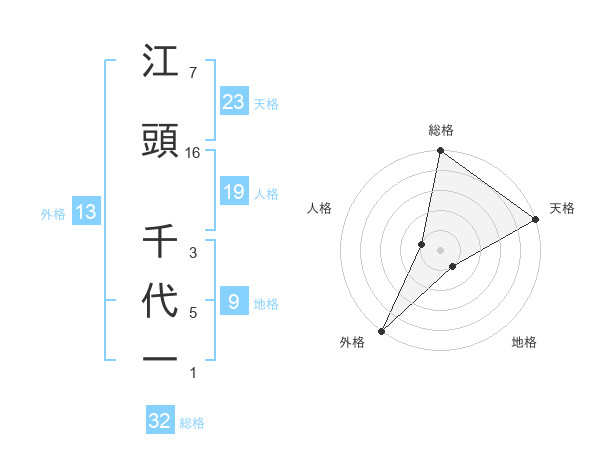 江頭 千代一さんを姓名の画数から五運を鑑定