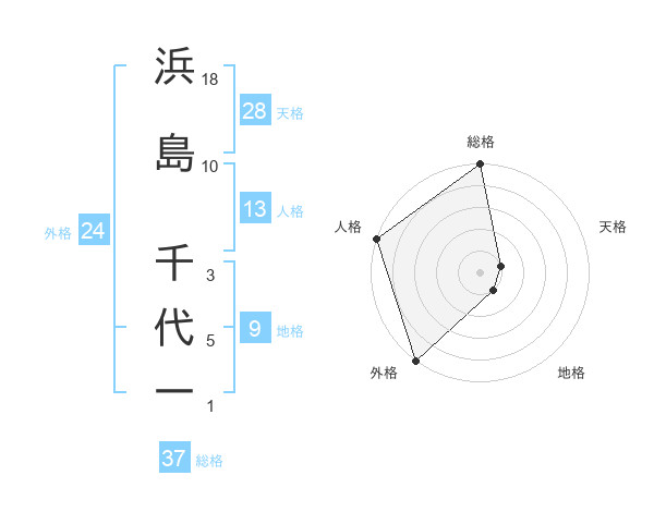 浜島 千代一さんの総格は37画の5点