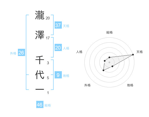 瀧澤 千代一さんを姓名の画数から五運を鑑定