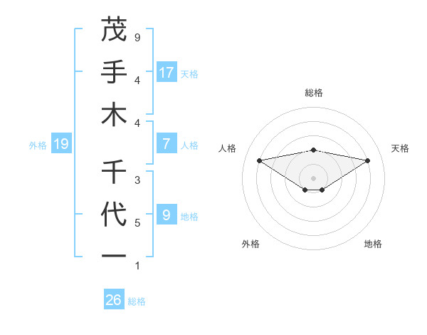 茂手木 千代一さんの総格は26画の2点