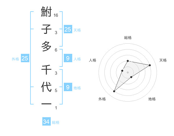 鮒子多 千代一さんを姓名の画数から五運を鑑定