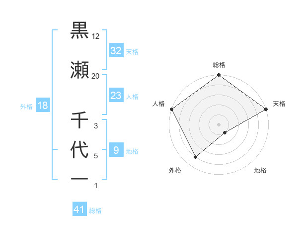 黒瀬 千代一さんを姓名の画数から五運を鑑定