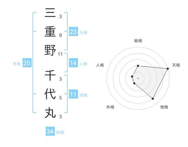 三重野 千代丸さんを姓名の画数から五運を鑑定