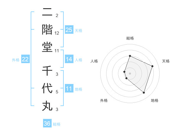 二階堂 千代丸さんを姓名の画数から五運を鑑定