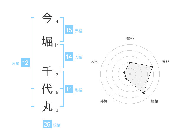 今堀 千代丸さんを姓名の画数から五運を鑑定