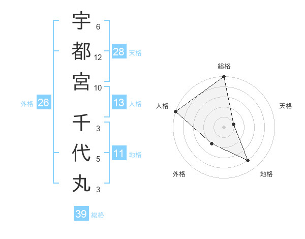 宇都宮 千代丸さんを姓名の画数から五運を鑑定