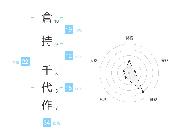 倉持 千代作さんを姓名の画数から五運を鑑定