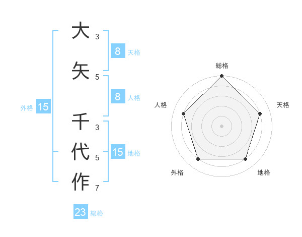 大矢 千代作さんを姓名の画数から五運を鑑定