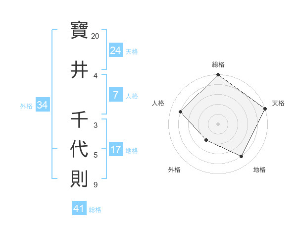寶井 千代則さんを姓名の画数から五運を鑑定