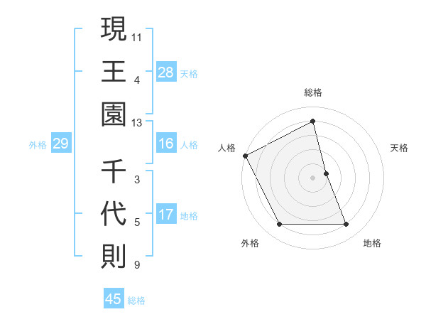 現王園 千代則さんを姓名の画数から五運を鑑定