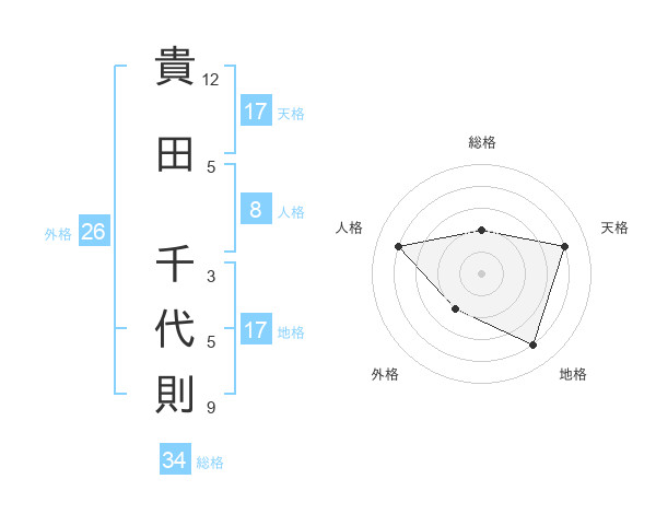 貴田 千代則さんの天格は17画の4点!