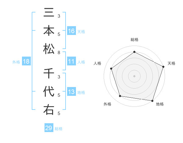 三本松 千代右さんの総格は29画の4点!