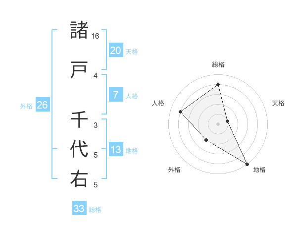 諸戸 千代右さんの天格は20画の1点!
