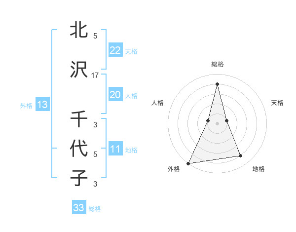 北沢 千代子さんを姓名の画数から五運を鑑定
