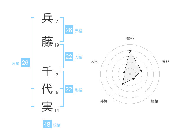 兵藤 千代実さんを姓名の画数から五運を鑑定
