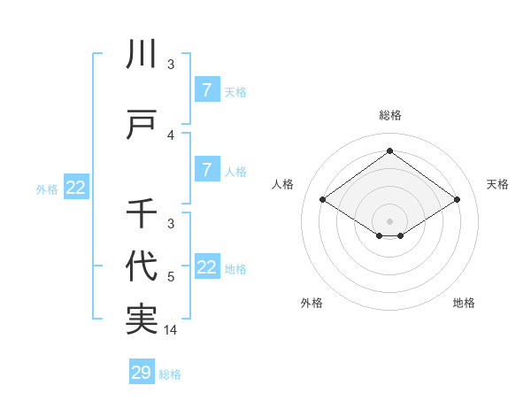 川戸 千代実さんを姓名の画数から五運を鑑定