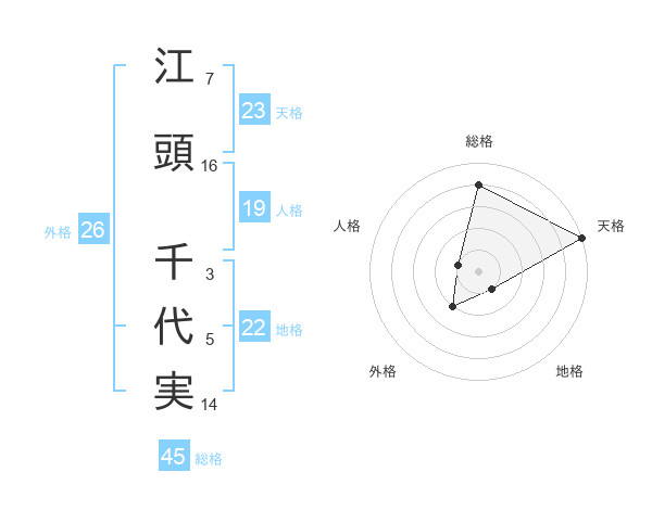 江頭 千代実さんを姓名の画数から五運を鑑定
