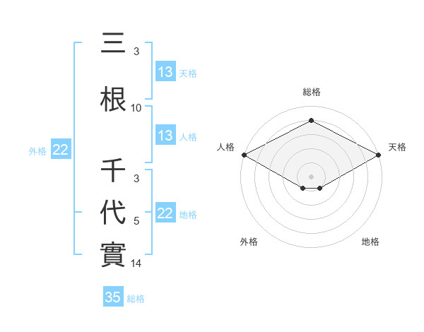 三根 千代實さんの総格は35画の4点!