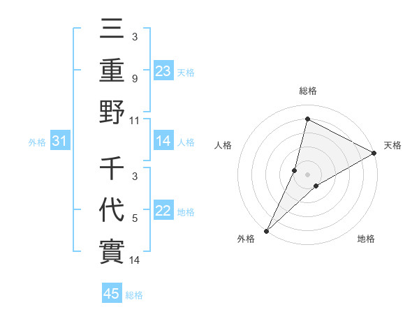 三重野 千代實さんの総格は45画の4点!