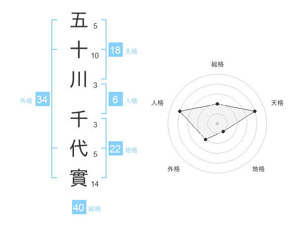 五十川 千代實さんを姓名の画数から五運を鑑定