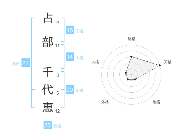 占部 千代恵さんを姓名の画数から五運を鑑定