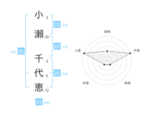 小瀬 千代恵さんを姓名の画数から五運を鑑定