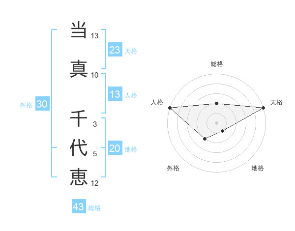 当真 千代恵さんの天格は23画の5点!
