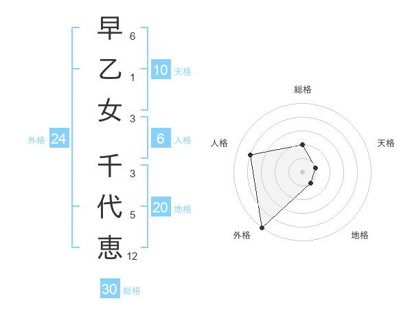 早乙女 千代恵さんを姓名の画数から五運を鑑定