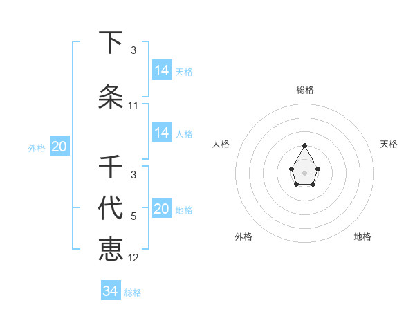 下条 千代恵さんを姓名の画数から五運を鑑定