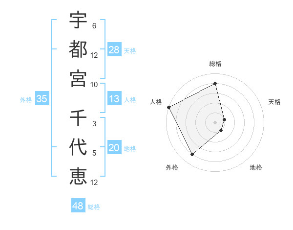 宇都宮 千代恵さんの総格は48画の4点