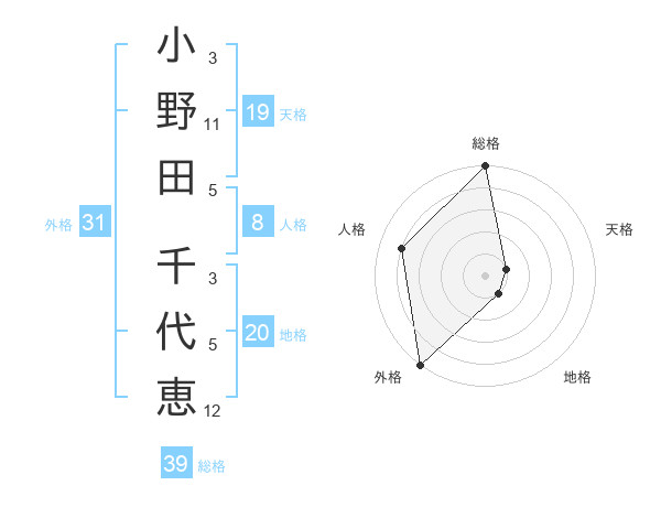 小野田 千代恵さんの外格は31画の5点!