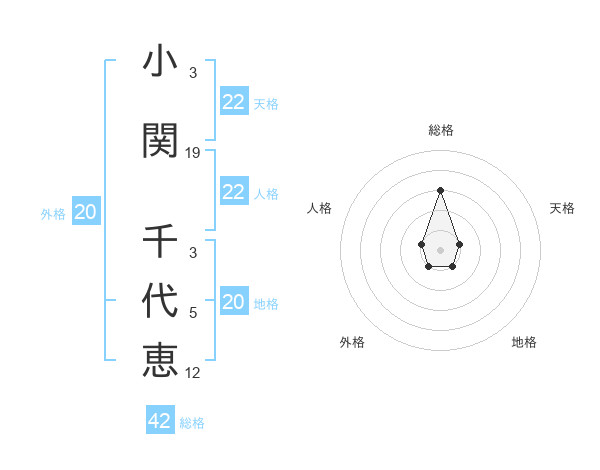 小関 千代恵さんの総格は42画の3点!