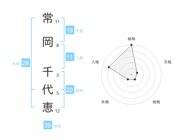 常岡 千代恵さんを姓名の画数から五運を鑑定
