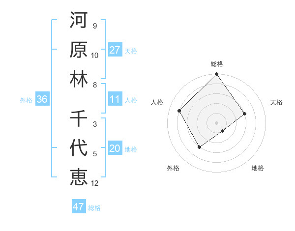 河原林 千代恵さんを姓名の画数から五運を鑑定