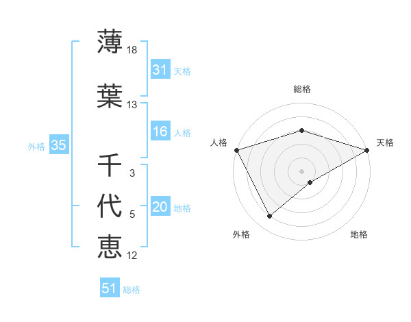 薄葉 千代恵さんの総格は51画の3点!