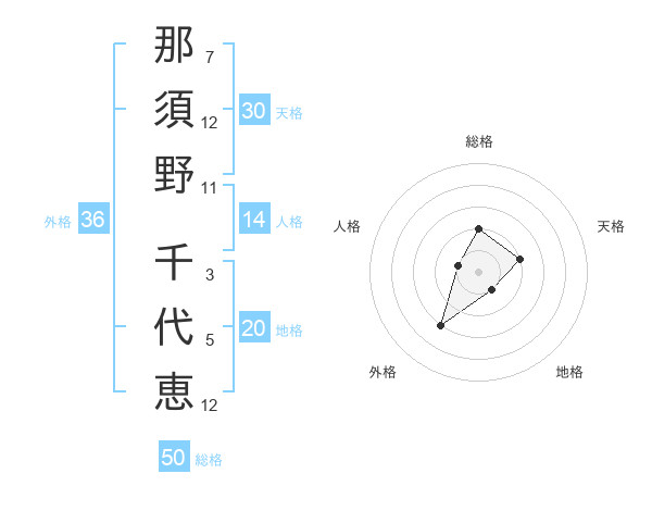 那須野 千代恵さんを姓名の画数から五運を鑑定