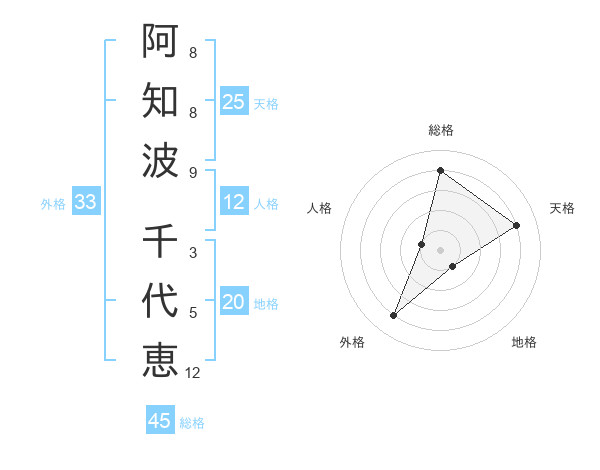 阿知波 千代恵さんを姓名の画数から五運を鑑定