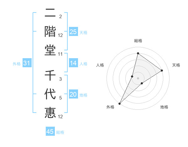 二階堂 千代惠さんを姓名の画数から五運を鑑定