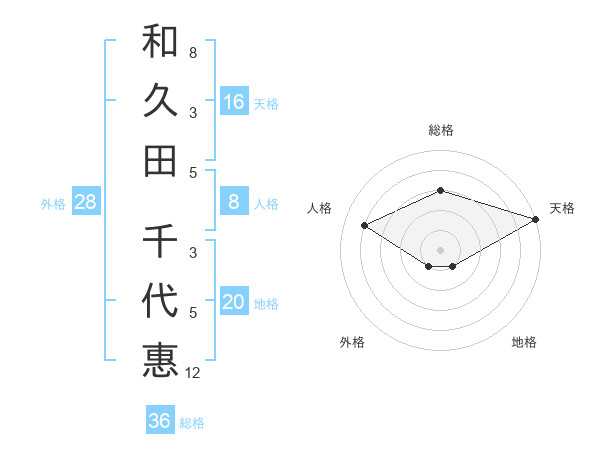 和久田 千代惠さんを姓名の画数から五運を鑑定