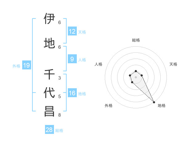 伊地 千代昌さんを姓名の画数から五運を鑑定