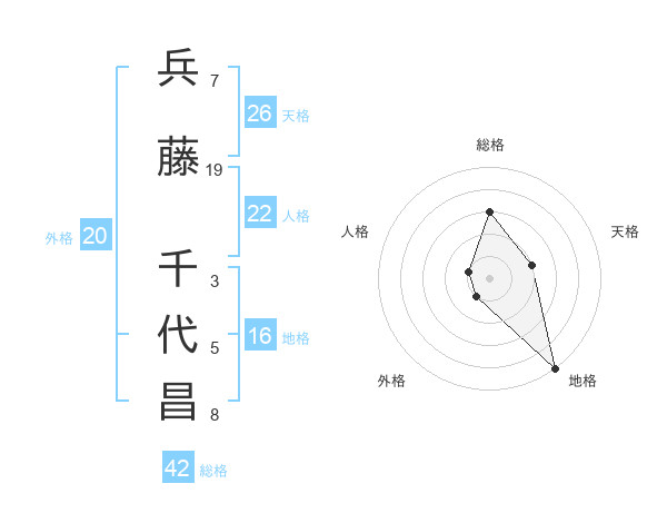 兵藤 千代昌さんを姓名の画数から五運を鑑定