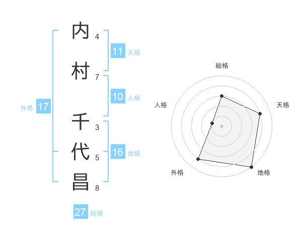 内村 千代昌さんを姓名の画数から五運を鑑定