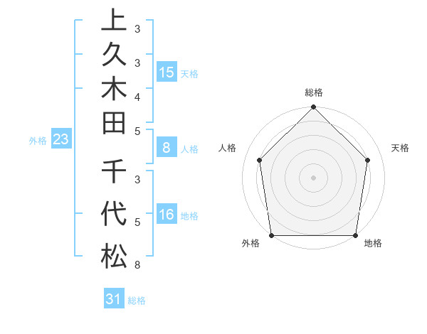上久木田 千代松さんを姓名の画数から五運を鑑定