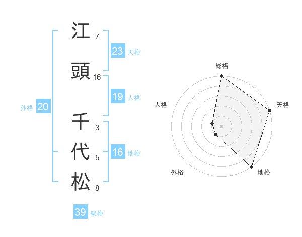 江頭 千代松さんを姓名の画数から五運を鑑定