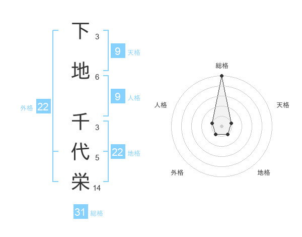 下地 千代栄さんを姓名の画数から五運を鑑定
