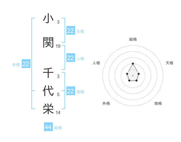 小関 千代栄さんを姓名の画数から五運を鑑定