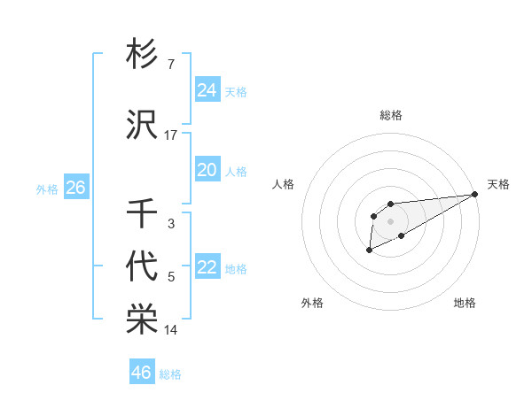 杉沢 千代栄さんを姓名の画数から五運を鑑定
