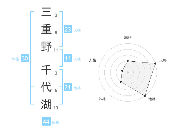 三重野 千代湖さんを姓名の画数から五運を鑑定