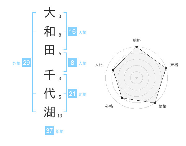 大和田 千代湖さんの総格は37画の5点